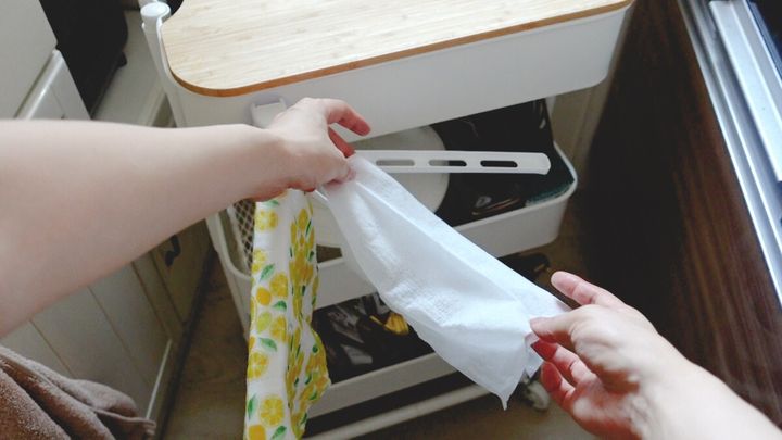 キッチン回りの見た目もすっきりし、1枚のタオルを使い倒せてすごく得した気分です。用途によっては3回と言わず、破けるまで長く使えるかと思いますよ。