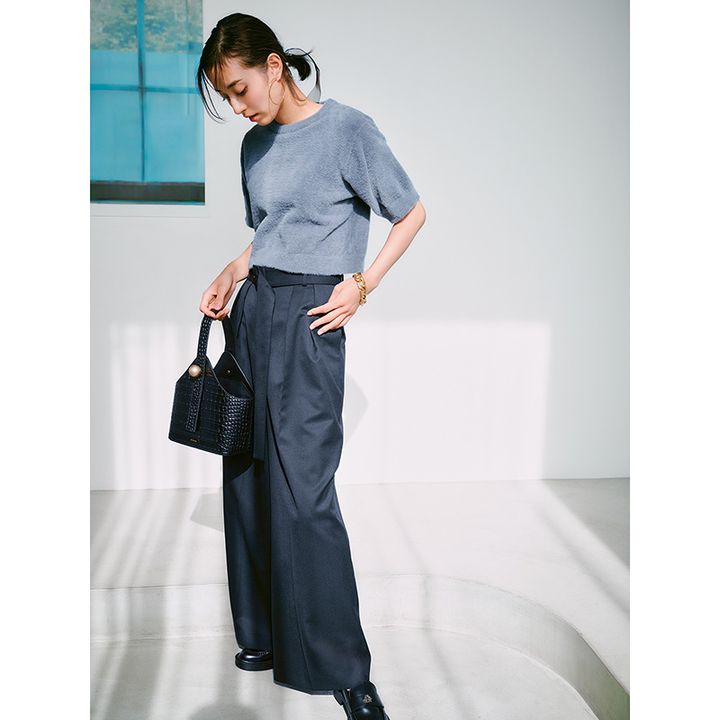 トップス¥15,950(カベサロッソ)タックパンツ¥23,100(デミルクスビームス/デミルクスビームス新宿)ピアス¥66,000(モニス/フォーティーンショールーム)ブレスレット¥37,800(アビステ)バッグ¥42,900(オルセット/アッシュプラスエリオトロープ)ローファー¥19,800(ダイアナ/ダイアナ銀座本店)