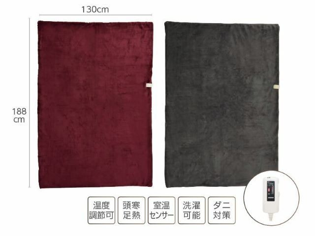 機能等 :温度調節可、室温センサー付き、頭寒足熱配線、ウォッシャブル、ダニ対策モード付き