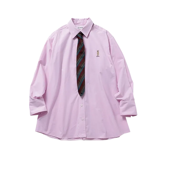 ワンポイントピンクシャツ(ボウタイつき)13,970円/LILY BROWN 多色レジメンタルネクタイ 6,490円/原宿シカゴ神宮前店