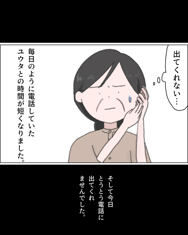 そして今日、とうとう電話に出てくれませんでした。朝ユウタから聞いた夕飯の時間を狙った電話したのに。