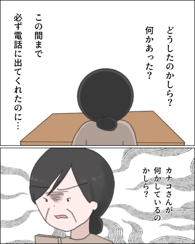 どうしたのかしら?何かあった?この間まで必ず電話に出てくれたのに。