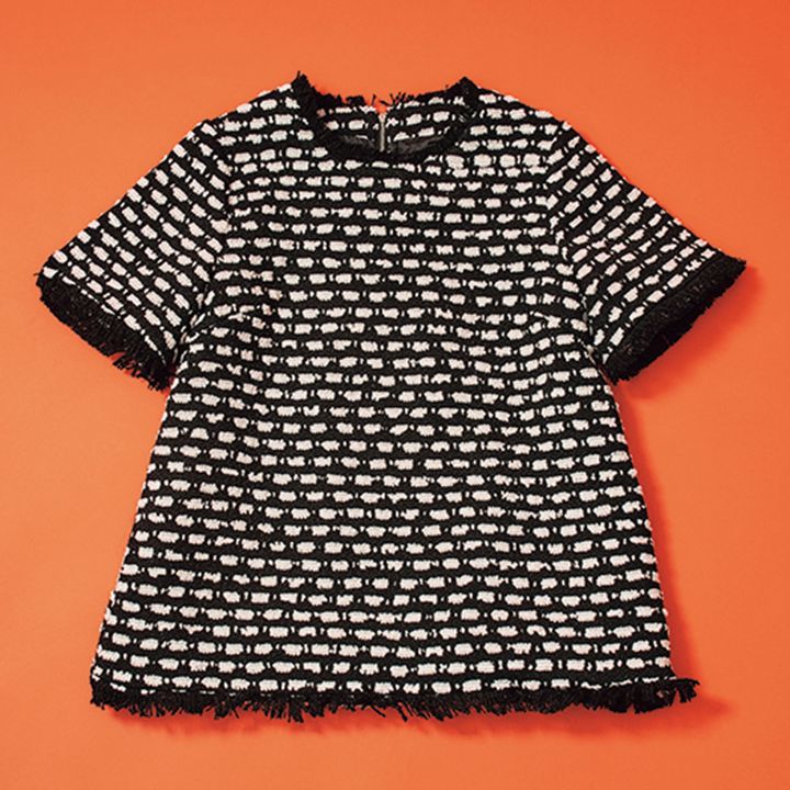 実際に着るのはまだ少し先になりそうですが、半袖のツイードトップスを晩夏アイテムとしてGETしました。華やかな存在感と立体感のあるフォルムで、シンプルボトムスとのワンツーコーデもサマになります。