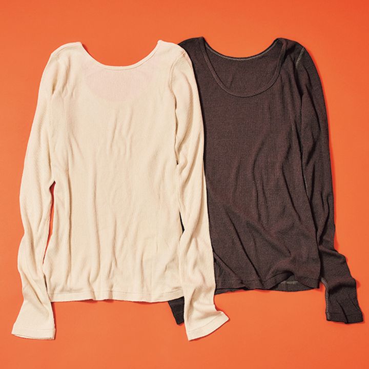 見かけるとついつい手にしてしまう、背中がざっくりあいているカットソー。こちらはサーマル生地ながらヘルシーな肌見せを楽しめそうで2色買い♡がしがし洗えて、暑い時期が長そうなこの秋活躍の予感。