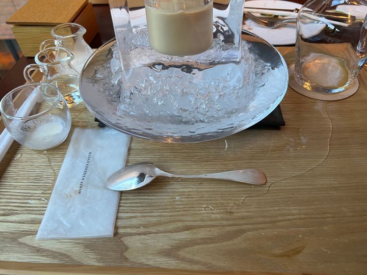 出典:MORE 氷の器が溶けだして水浸しに…笑 もちろんトレーや布巾があるので席や服が濡れるということはありませんのでご安心ください。 水浸しになって氷が溶けていくのもなんだか風情があって私はとても好きでした。 ちなみに氷の器は、どこが溶けたのか分からないくらい最初の形のままでした。 器が溶けきるには、何時間かかるのか少し気になります…👀