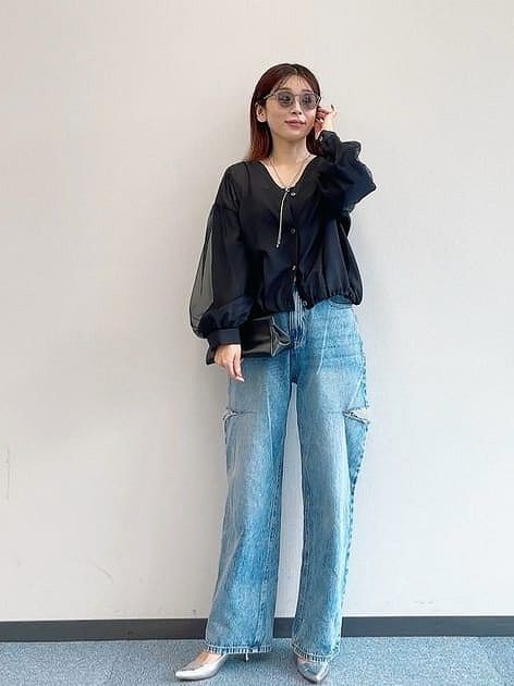 爽やかなブルーに真っ白い襟がインパクト大のパフスリープシャツならカジュアルもキレイめも両方◎。デニム合わせで普段のシンプルなアイテムも洒落感UPを実現。可愛い系にもかっこいい系にも着こなせます。パフスリーブの切り替えが下めなので、大人も甘くなりすぎすに取り入れやすいのもポイントです。