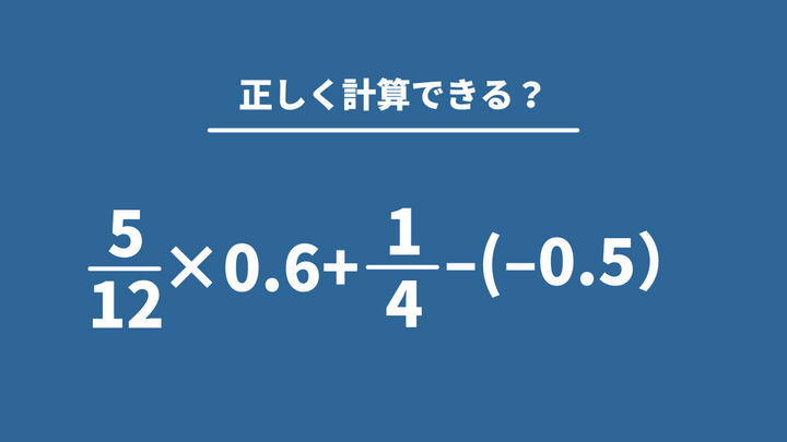 大人が意外と間違えやすい数学「5/12×0.6+1/4−(−0.5)」→正しく計算できる?