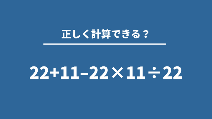 大人が意外と解けない算数「22+11−22×11÷22」→正しく計算できる?