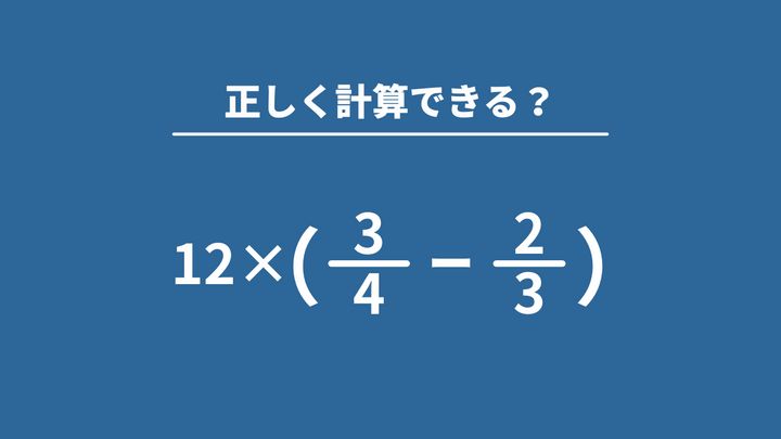 大人が意外と忘れている算数「12×(3/4−2/3)」→正しく計算できる?