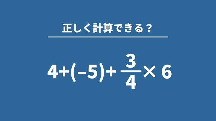 大人が意外と間違える算数「4+(−5)+3/4×6」→正しく計算できる?