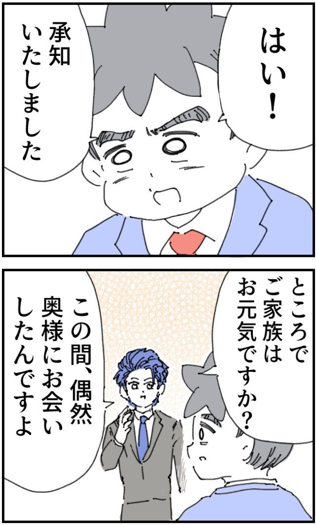 「ところでご家族はお元気ですか?」と、佐山さんは妻かおりさんに偶然会ったことをいちろうさんに伝えました。