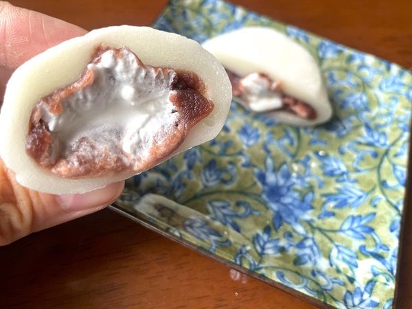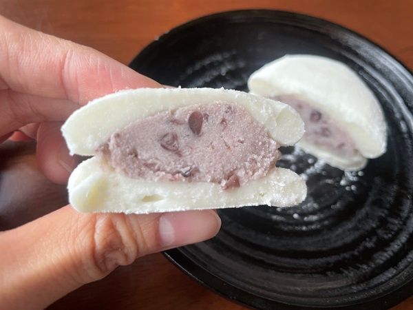 一口食べるととろっととろけるようなもち生地が美味しい! もちもちでよく伸びるので食べ応えがあります。そして中にはこしあんとクリームがたっぷり入っていました。なめらかなクリームとあずきの素朴な甘さを感じるこしあん、そしてもち生地と間違いない美味しさ。半解凍だとよりもちもちになり、しっかり解凍するととろとろになるので好きな解凍具合で楽しめますよ。
