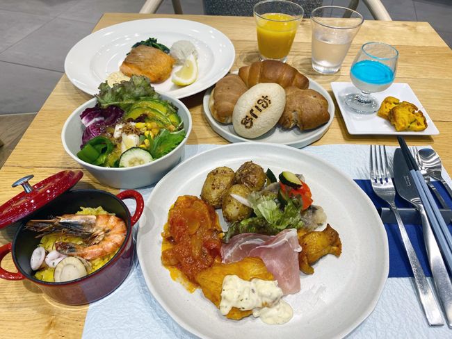 続いてデリコーナーへ。鰆のエスカベッシュ、甘辛風味のタンドリーチキン、きのことベーコンのクリームペンネなど、食べ応えのある料理が約12種そろっていて、こちらもどれを食べるか迷う~。