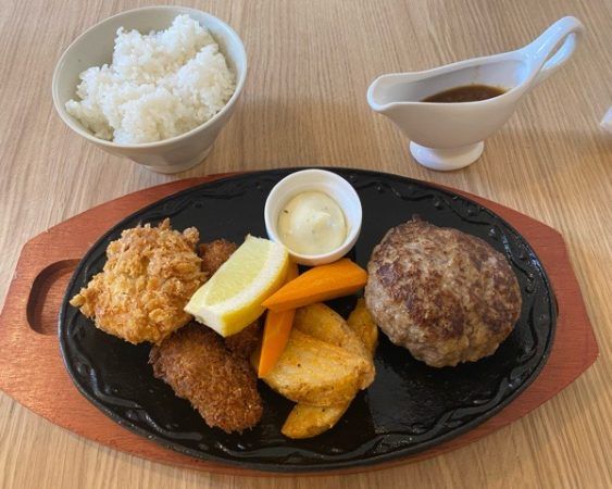 そしてミックスグリルにはハンバーグ、ホタテフライ、カキフライ、ポテトいろいろなものを少しずつ食べられるのも女子としては嬉しいですよね。ハンバーグはお肉がぎゅっと詰まって食べ応えがありました。フライの衣もサクサクでカキとホタテ、お肉とともに魚介を感じられました。