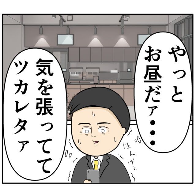 「やっとお昼だぁ・・気を張っててツカレタァ・・」ボロを出さないようにと、いつもはしない気を張りすぎて疲れてしまった良し男さん。