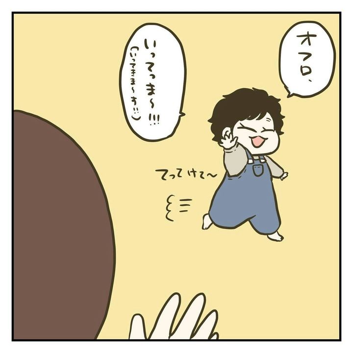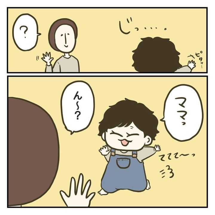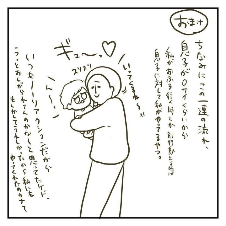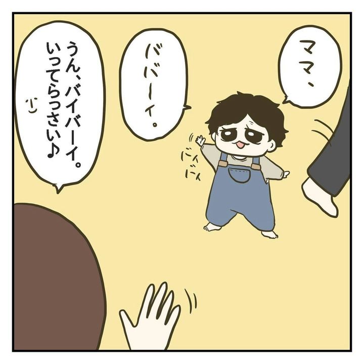 お風呂へ入るため、パパと一緒に浴室へ向かうジェーコ(@jeeeeeeeeko)さんの息子・なーさん。いつものように、「バイバーイ」と手を振って別れの挨拶をしていると、トコトコと向かってきます。そこから繰り出される、なーさんによるほほ笑ましい一連の儀式があるのでした。ジェーコさんが思わず見せてしまう恍惚の表情に注目です。