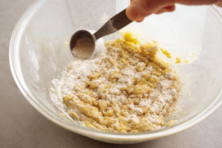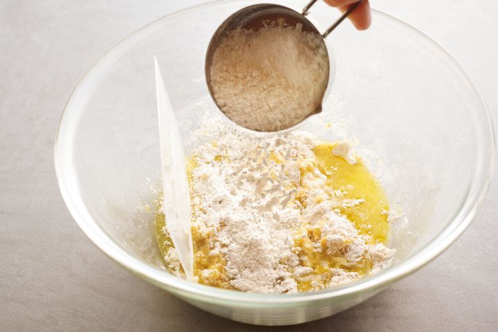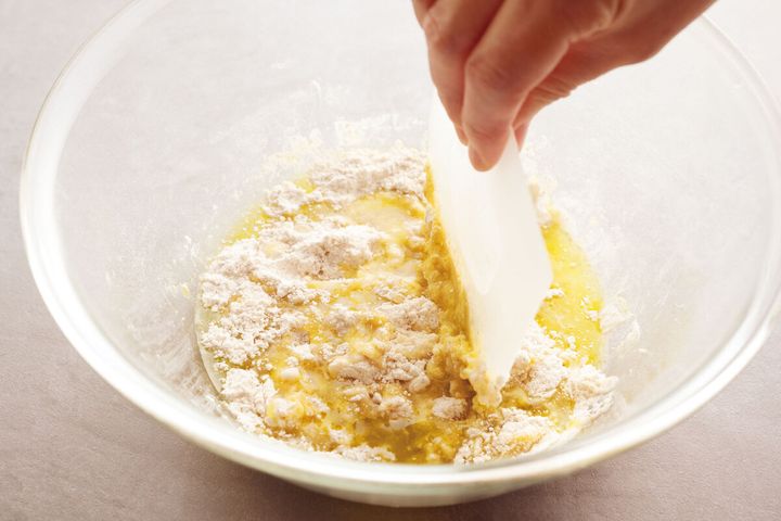 (1)ボールに〈A〉を入れてスプーンで混ぜ、約1/4カップ分(ディナースプーン約3杯分)を取り分ける。小さめの器に〈B〉を入れてさっと混ぜ、ボールに加える。