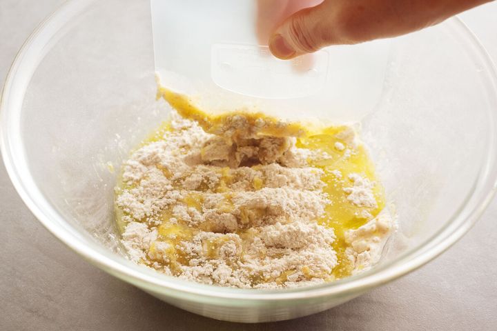 (3)取り分けておいた〈A〉を加え、(2)と同様にスケッパーを差し入れる。