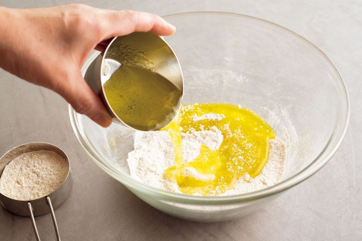 パーティーにも大活躍するとっておきのスイーツパイは、型いらずで手軽に作れるのがうれしい。生地にはオリーブオイルを使い、寝かせる手間もいりません。