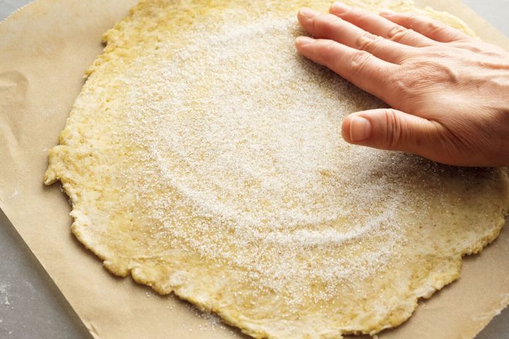 縁から2~3cm内側にグラニュー糖大さじ1を円状に広げる。