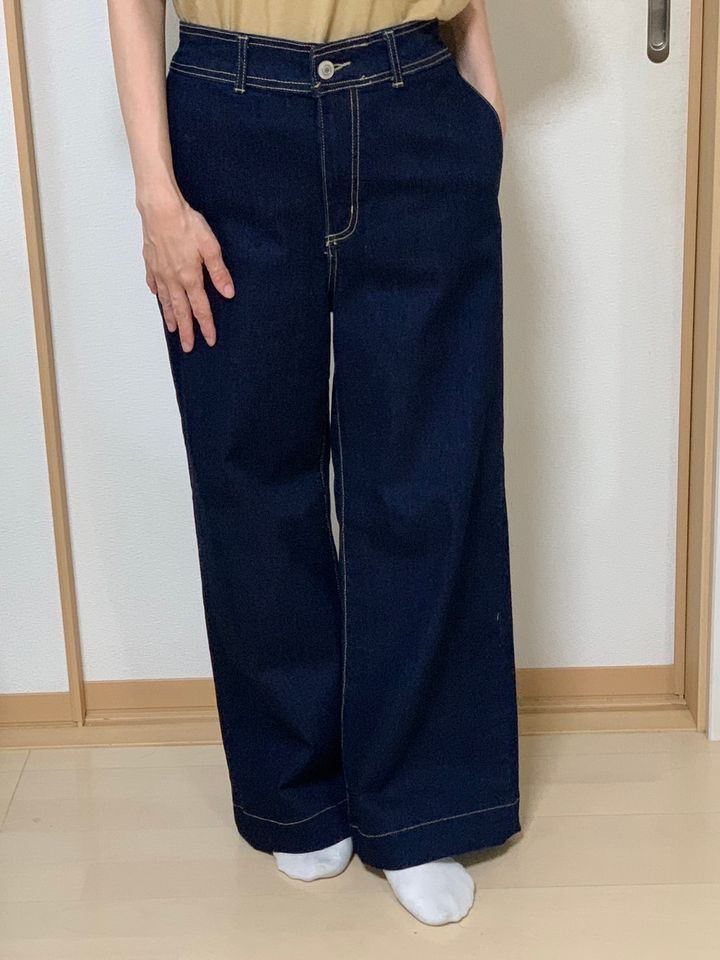 濃いブルーのワイドシルエットにステッチのデザインがお気に入りです。