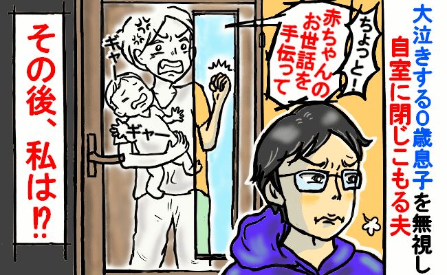 「拗ねてないで育児して!」大泣きする0歳息子を無視し自室に閉じこもる夫。呼ぶも返答なし。その後!
