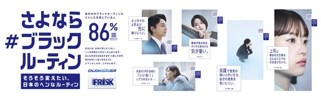 因みに、フルリニューアルしたFRISKは、交通広告「さよなら、#ブラックルーティン」を新宿と大手町で展開中。同調圧力「#ブラックルーティン」のモヤモヤに負けず、ジブンらしく毎日を楽しもう!そんな社会への応援メッセージが詰まった広告となっているので、是非この機会に見つけてみてくださいね♪