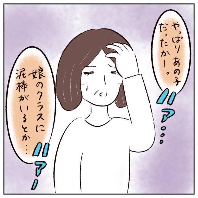 そして、驚きと同時に「やっぱりあの子だったかー」と溜息をつき、「娘のクラスに泥棒がいるとか・・・」と言って再び深い溜息をつきました。