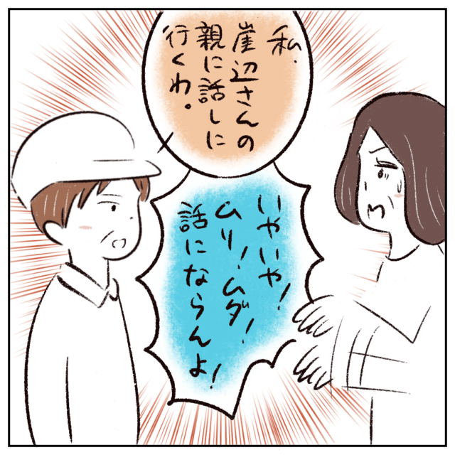 しかし、このままでは良くないと思ったお母さんは「私、崖辺さんの親に話しに行くわ」と決意。前田さんは「いやいや!ムリ!ムダ!話にならんよ!」と止めます。
