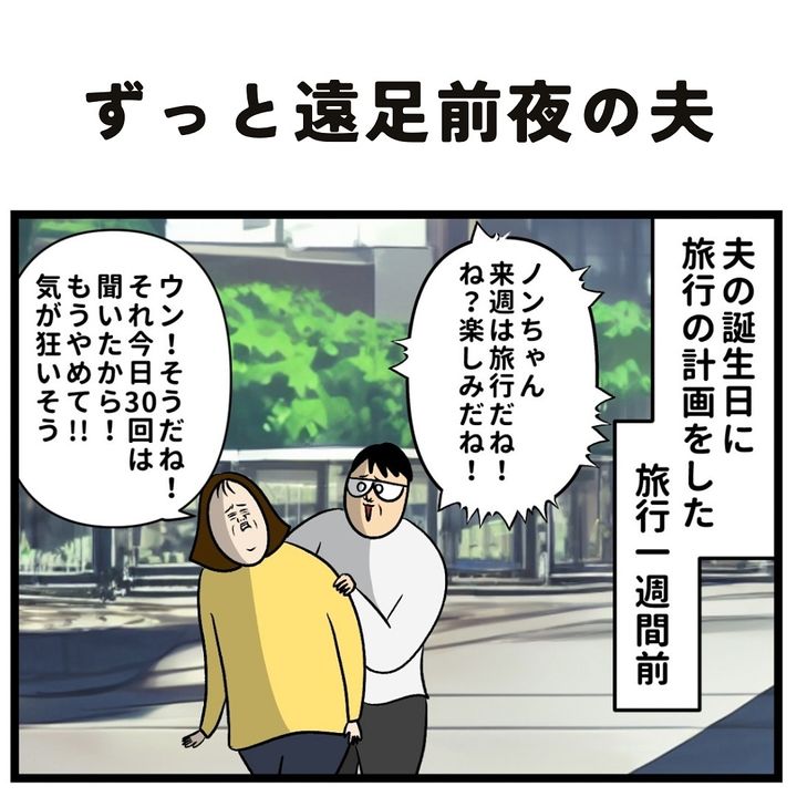 2. 誕生日旅行の1週間前…「気が狂いそう」夫の“乙女が爆発した行動”に【2.7万いいね】