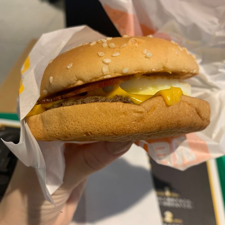 月見バーガーにチェダーチーズのコクのある味がマッチした一品です!