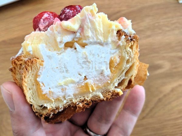 ラズベリーデニッシュは、冷蔵庫で冷やしていたので、そのままいただきましたが、中には2種類のクリームが入っていて甘くて美味しかったです!