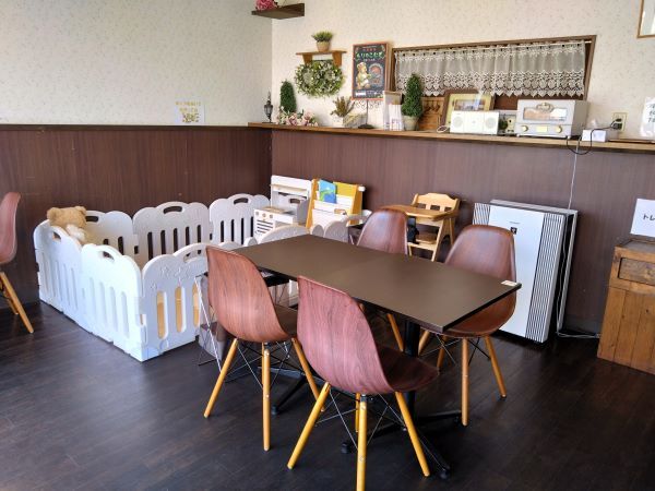 お店を出てすぐ左隣にあるイートインスペースには、テーブルが3テーブル分、トイレや手洗いスペース、キッズコーナーまであり、お子様連れにも嬉しいです。