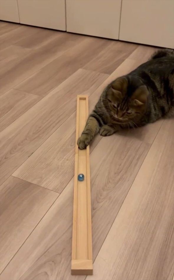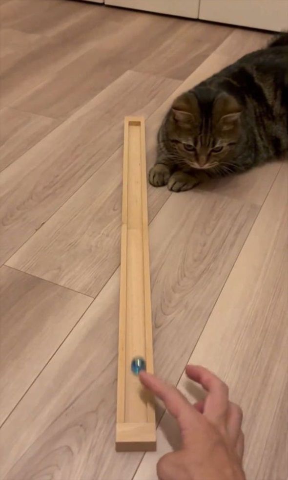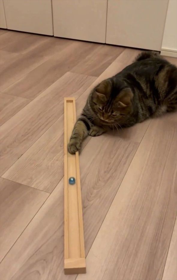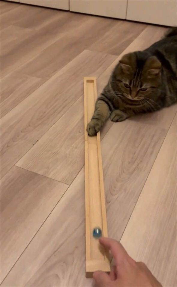 3. ネコはビー玉遊びにもう夢中!「反応速度が速い」「構ってあげてるのか、構ってもらってるのか」