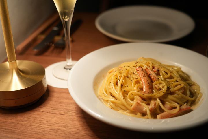 とろとろクリーミーなソースがパスタの太い麺によく絡みもちもちで、食べ応えも抜群。