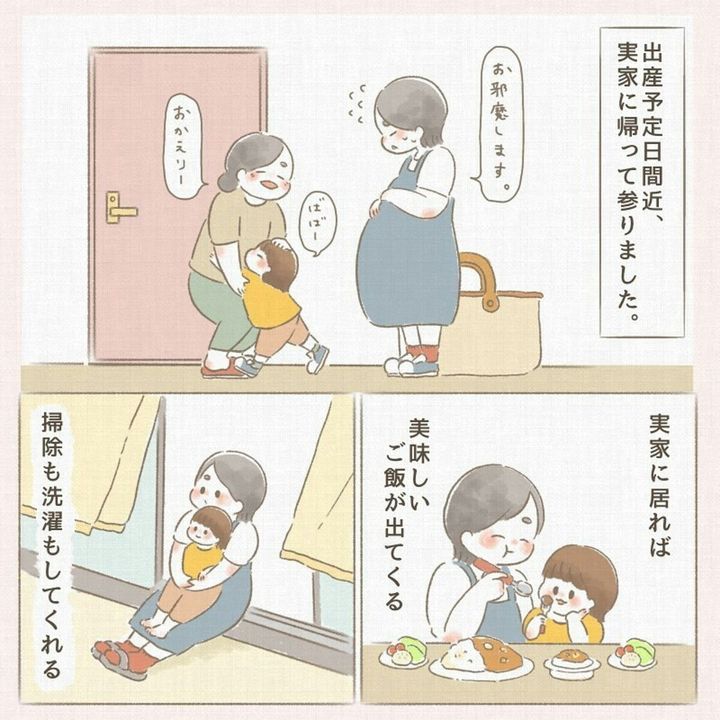 たまき(@choki_tama)さんは、出産に伴う里帰り中、なんだかモヤモヤとした気持ちになっていました。おいしいごはんが出てきたり、掃除や洗濯を済ませてくれたりと実家ならではな快適さがあるのに…。なぜこんな感情になるのか考えてみたところ、あることに気づいたのでした。『帰りたい場所』をごらんください。