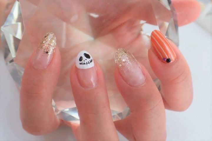 秋のハロウィーンの時期には、いつものネイルをハロウィーン仕様にしちゃうのもアリ。丸フレンチを応用すれば、セルフネイルでもこんなにキュートでさり気なくハロウィーン気分を取り入れられますよ♡ 顔の細かい部分はネイル用の細筆やドット棒を利用すれば簡単にできるのだそう。あとは、大きめグリッターのポリッシュを使ってグラデーションを作ったり、かぼちゃカラーのストライプネイルを作ったりするだけ!ぜひチャレンジしてみて。
