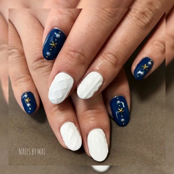 ニットネイルは今年もトレンド継続が予想されます!ニットをそのまま指先に持ってきたかのような質感が、晩秋~冬にピッタリ♡写真はネイビーと組み合わせていますが、ピンクなどかわいらしい色味とも相性抜群です。 また、ニット部分をブラウンやグレーなどに変更するのも素敵です。寒くなってきたなと感じたら、指先もあったか仕様にしてみませんか?