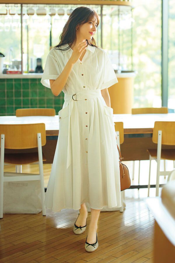 生地の透け感も、ふんわり袖をがっちり見せない秘訣。ナチュラルが得意なリラックス感あるシャツワンピで、とことん着映えて。