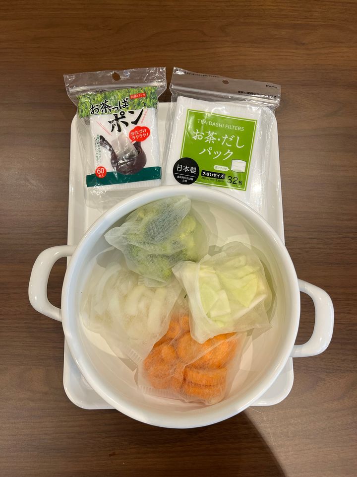 \一番使えた100均アイテムはコレ/ たくさんの野菜を同時にゆでられる 「お茶パック」が便利!