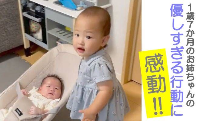 64万回再生!感動の声♡1カ月妹がバウンサーで寝ていると…1歳7カ月姉の取ったまさかの行動とは?