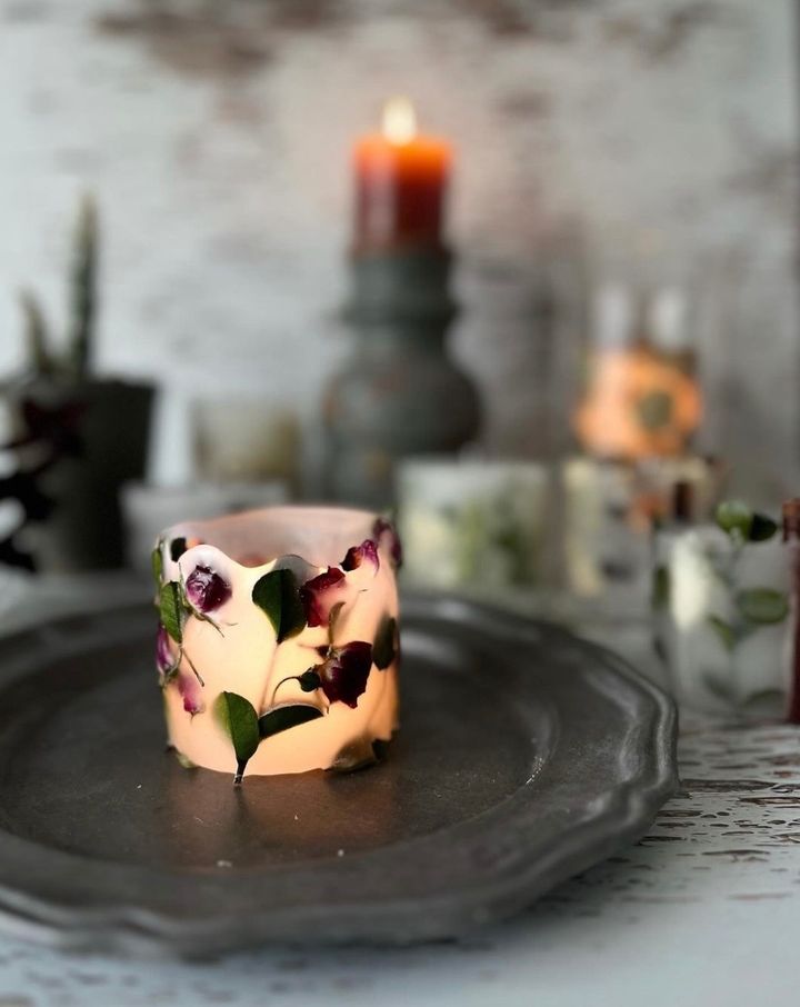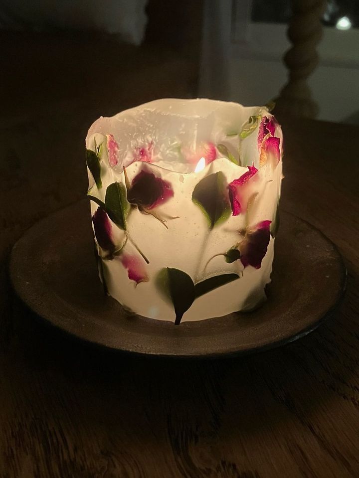 キャンドルは全て、小さな薔薇やライラック、デイジーなど、