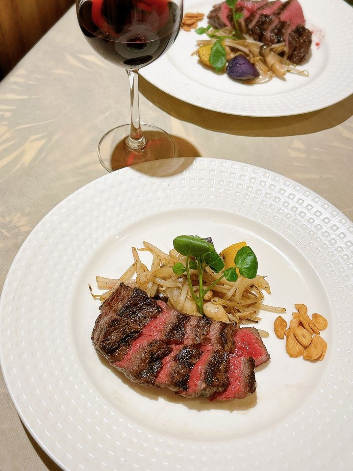 赤みの加減が絶妙なステーキで、神戸牛を堪能˚✧₊