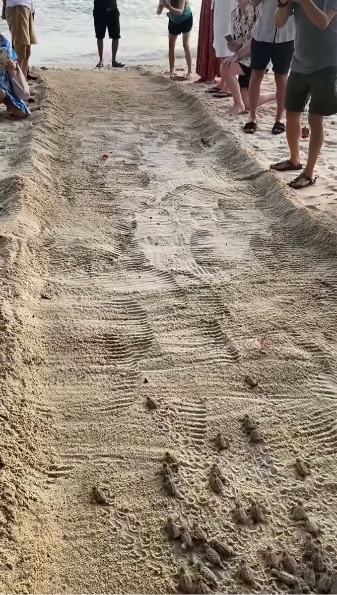 海に向かう孵化したばかりのカメの赤ちゃんたち。力いっぱい進んでいく姿が感動的【海外・動画】