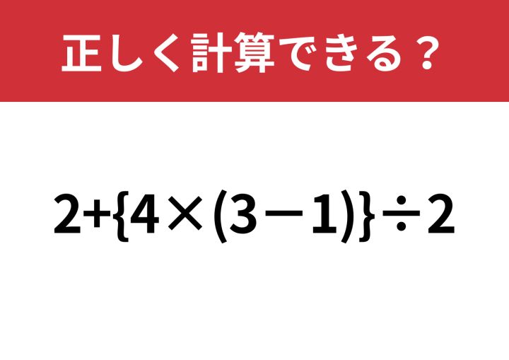 「2+{4×(3−1)}÷2」正しく計算できる?