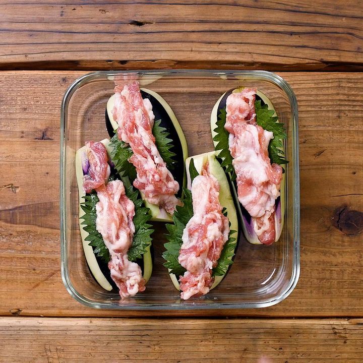 3. レンジで簡単!なすの豚肉挟み蒸し