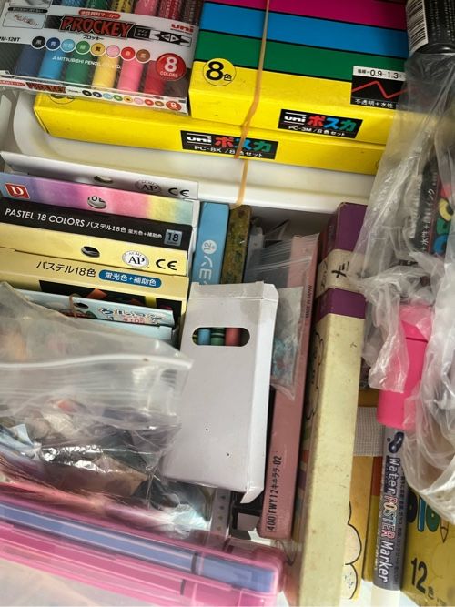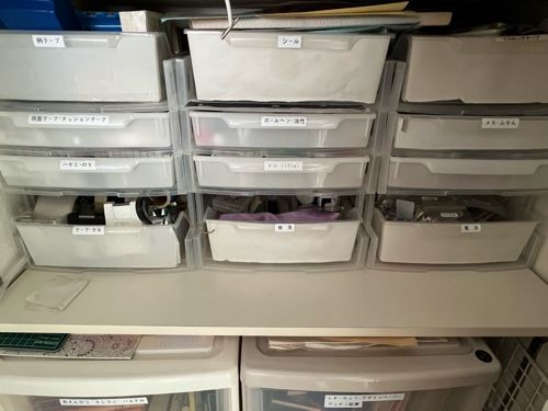 以前色系統に分けてしまっていましたが、それも大変なので、大きめなケースに入っていればokにしています。