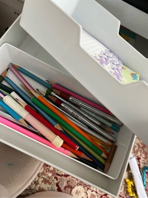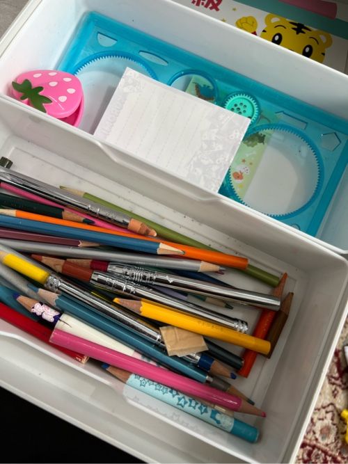 ママ友達が色鉛筆の使用を許可制にしているのに対し、我が家はいつも鉛筆と色鉛筆・落書き帳や自由帳は、子どもがすぐ取りだせる場所にしまっていること。