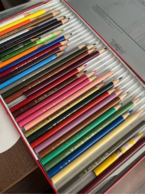 失くしてしまう心配に関しては、最近は100円ショップでも12色程度のクレヨンや色鉛筆が一式買えます。