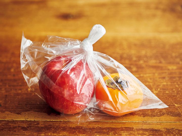 風通しがよく直射日光が当たらない場所にそのまま置いておくだけでも徐々に追熟されますが、急ぐようならりんごといっしょにポリ袋に入れて常温保存。りんごは「エチレンガス」という果物の熟成を早めるガスを放出しているので、近くにある果物の追熟も早める効果があります。